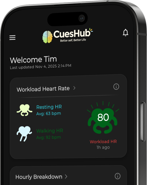Now, he uses CuesHub to monitor recovery and plans to increase aerobic activity to bring his resting rate down—turning resilience into longevity.
